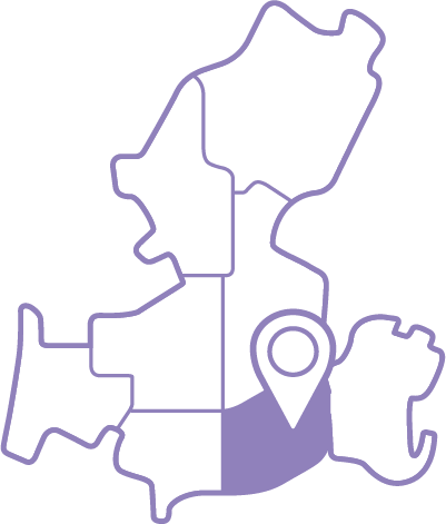 学校や図書館、文化会館などの教育施設が集まる地域。